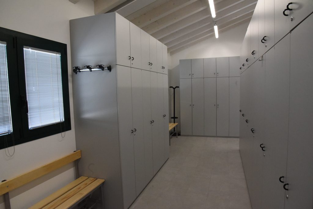 Sono inoltre stati ultimati i lavori di ristrutturazione del piano terra della moto rimessa, con un varco d’ingresso e uno di uscita per i mezzi di servizio, ed è stato realizzato un nuovo piano superiore, nel quale sono stati collocati i nuovi spogliatoi e i servizi igienici. I volumi preesistenti non sono stati stravolti ma semplicemente modificati per ricavare la superficie da dedicare ai nuovi spogliatoi, l’accesso ai quali avviene dai due vani scala e dal disimpegno dell’immobile confinante, da cui si aprono due accessi e da cui poi si accede ai servizi igienici. In questo caso i lavori hanno avuto un costo di circa 600mila euro.