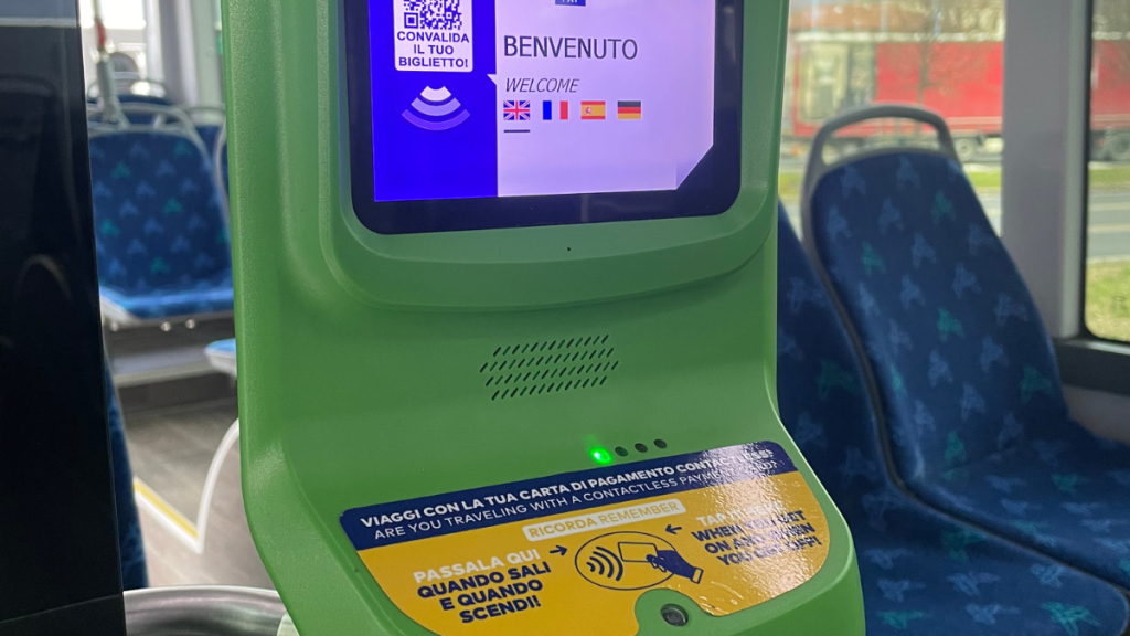 Il nuovo sistema mantiene il biglietto cartaceo, ma cambia il modo di validarlo. Basta avvicinarlo alla validatrice con il QR code rivolto verso l’alto: niente contatto, lettura immediata e luce verde che conferma il viaggio. Un sistema pensato per rendere più rapido l’accesso ai mezzi, soprattutto nelle ore di punta.