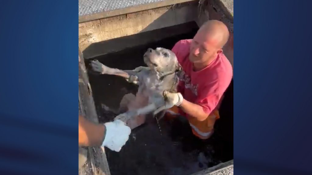 In suo aiuto è arrivato Antonio, un lavoratore del Comune che non ha esitato a calarsi nel chiusino per trarre in salvo l’animale che nelle immagini appare davvero stremato.