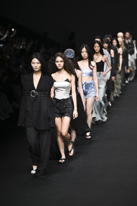 Le modelle presentano le creazioni di SENSEAWEEK durante la Shanghai Fashion Week Primavera/Estate 2026 a Shanghai, nella Cina orientale, ieri 9 ottobre 2025. La settimana della moda ha preso il via qui ieri.