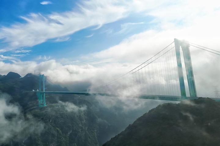 Il ponte Huajiang Grand Canyon, che si innalza 625 metri sopra il fiume Beipan nel terreno montuoso del Guizhou, è alto quasi nove volte il Golden Gate Bridge di San Francisco. Con una campata principale di 1.420 metri, il progetto è diventato, secondo le autorità provinciali del Guizhou, il ponte sospeso a travi reticolari in acciaio con la campata più lunga del mondo in terreno montuoso. Attraversando il grand canyon di Huajiang, soprannominato “la crepa della Terra”, la struttura lunga 2.890 metri è l’ultima aggiunta alla rete infrastrutturale in rapida espansione della seconda economia mondiale. (Xin)
