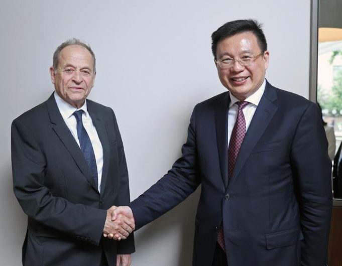Il presidente dell’agenzia di stampa Xinhua Fu Hua incontra Stephen Perry, insignito della China Reform Friendship Medal e presidente onorario del 48 Group Club britannico, a Londra, Regno Unito, il 16 giugno 2024. (Xin)