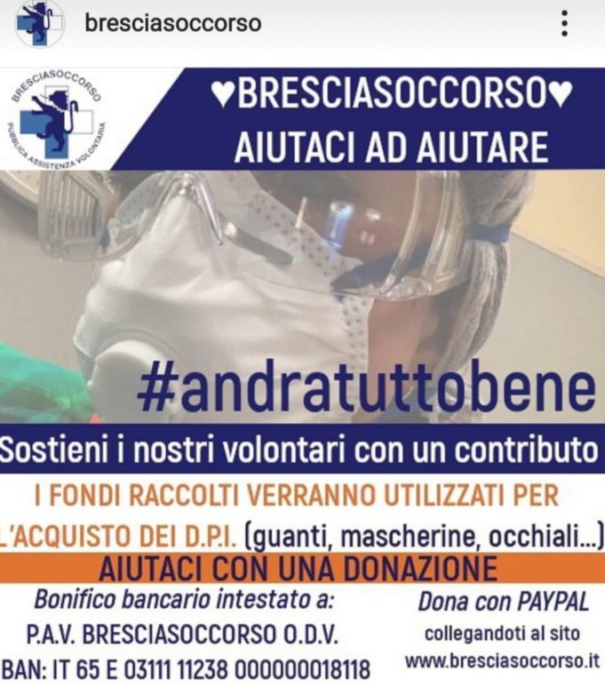 Dall’inizio dell’emergenza sanitaria, Bresciasoccorso ha aperto una raccolta fondi per garantire il costante