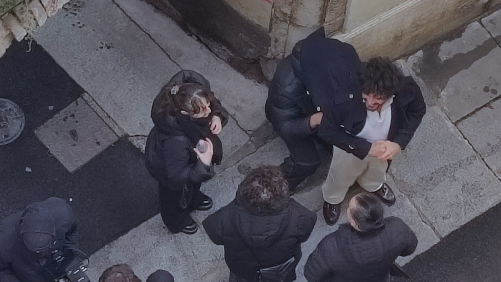 Con atteggiamento rilassato, Renga si muove con discrezione tra piazze e scorci familiari, quelli della sua città. Nessuna passerella, nessuna fretta: solo Brescia sullo sfondo e un artista che, nonostante il palco dell’Ariston, resta profondamente legato alle proprie radici.