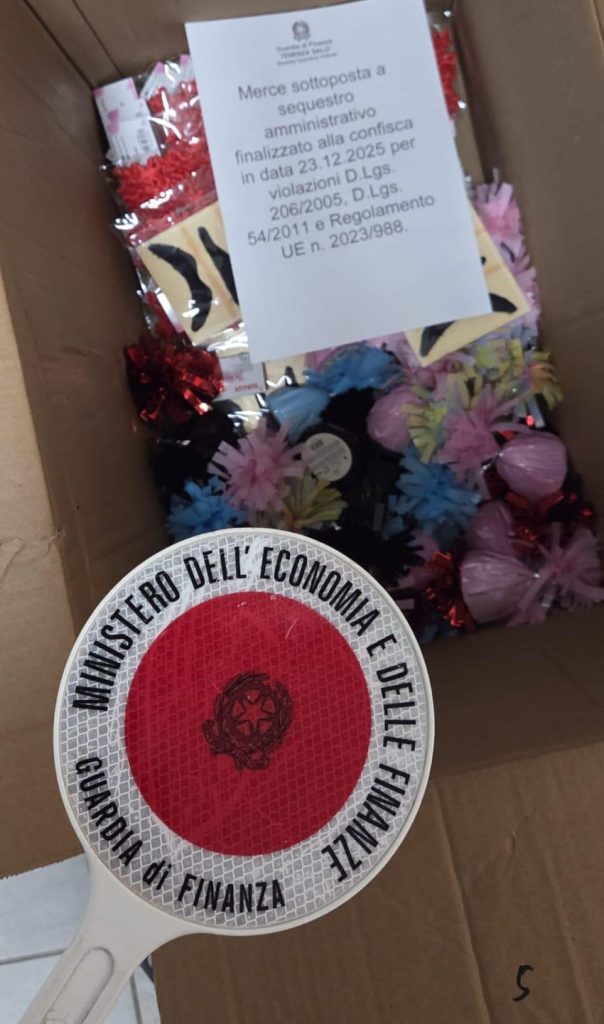 Le verifiche, scattate dopo l’analisi delle informazioni disponibili e il presidio economico del territorio, hanno portato alla scoperta di esercizi che mettevano in vendita addobbi natalizi, bigiotteria e giocattoli privi delle indicazioni obbligatorie in lingua italiana: dalla provenienza ai materiali, fino a istruzioni, precauzioni e destinazione d’uso.