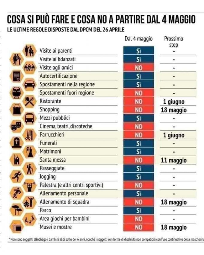 Ecco, in estrema sintesi cosa si può fare e cosa non si può fare dal 4 maggio