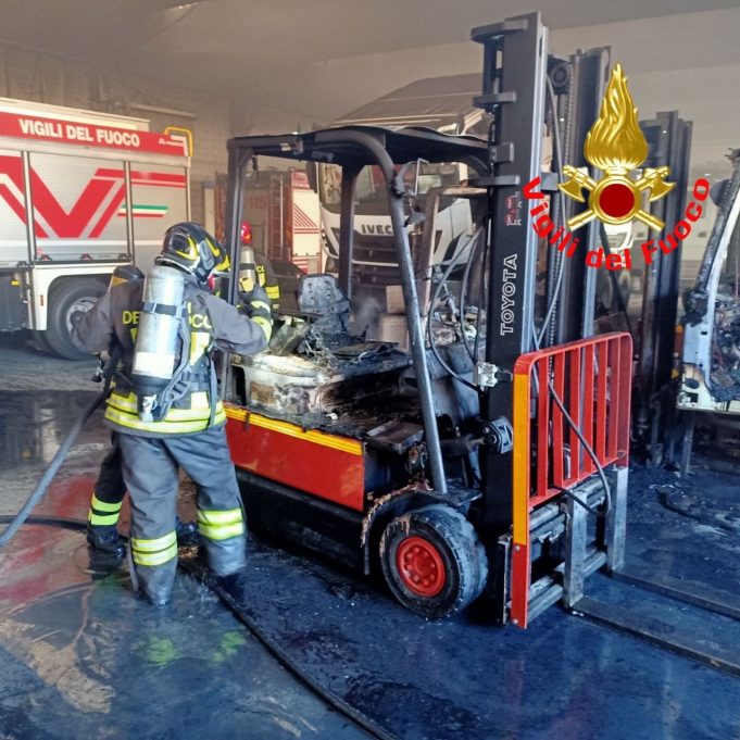 Le fiamme sono state probabilmente originate da un carrello elevatore alimentato elettricamente .