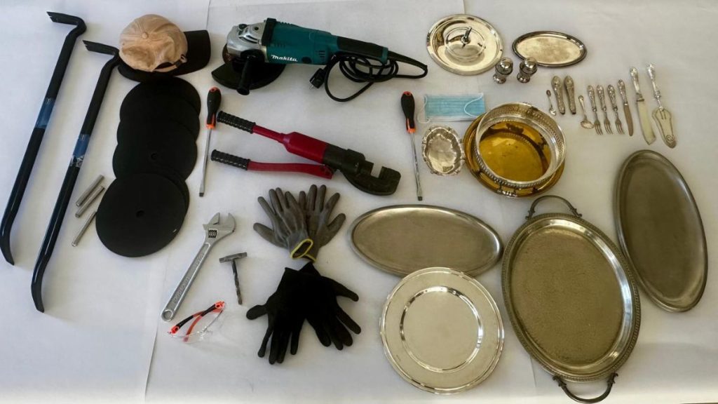 A seguito della perquisizione sono stati ritrovati: cacciativi, piedi di porco, flessibili, una pinza idraulica, oggetti rubati e il classico corredo dei ladri in abitazione come guanti, torce e simili.