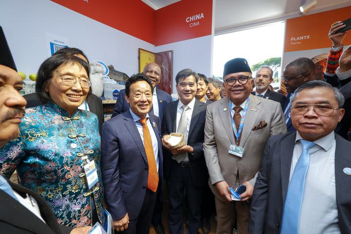 Roma, 11 ott 14:02 – (Xinhua) – Il direttore generale della Organizzazione delle Nazioni Unite per l’alimentazione e l’agricoltura (FAO), Qu Dongyu (secondo da sinistra), visita la mostra globale della FAO intitolata “From Seeds to Foods” (Dal seme al cibo) a Roma, in Italia, il 10 ottobre 2025. La FAO ha inaugurato ieri a Roma la mostra globale intitolata “From Seeds to Foods”, celebrando otto decenni di cooperazione internazionale nella lotta alla fame e nella trasformazione dei sistemi agroalimentari. (Xin)