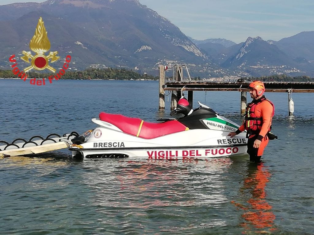 La moto d ‘acqua dei SOCCORRITORI ACQUATICI del Comando Provinciale dei vigili del fuoco di Brescia e l’ elicottero DRAGO, continuano a sorvolare la zona adiacente alla zona di ritrovamento degli effetti personali della donna.