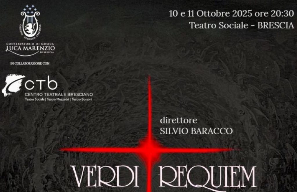 Conservatorio Luca Marenzio e Centro Teatrale Bresciano presentano un capolavoro della musica sacra: venerdì 10 e sabato 11 ottobre, in entrambi i casi alle 20.30, sarà messa in scena al Teatro Sociale, per la direzione del maestro Silvio Baracco, la Messa da Requiem di Giuseppe Verdi. Per giunta, nella rara versione per pianoforte a quattro mani e percussioni: sul palco ci saranno 100 coristi e 4 voci soliste, per guidare il pubblico tra momenti di potenza travolgente e commozione intensa. Un percorso musicale che unisce forza, spiritualità ed emozione, in un’esperienza umana e sonora di rara profondità.