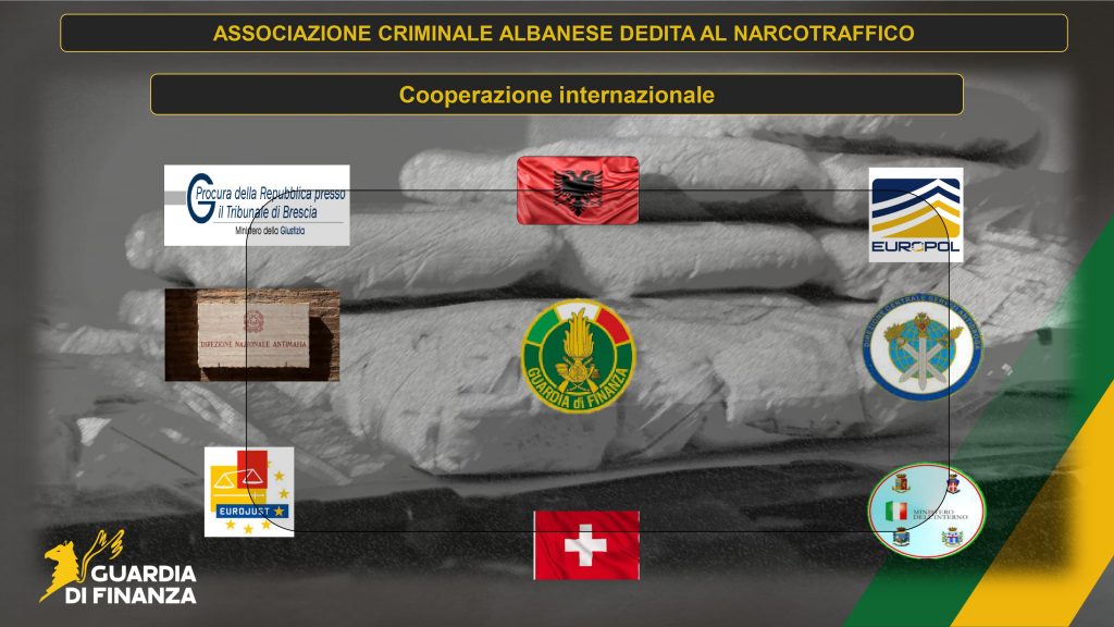 All’operazione hanno partecipato oltre 150 militari della Guardia di Finanza appartenenti al Comando Provinciale di Brescia e allo S.C.I.C.O. (Servizio Centrale di Investigazione sulla Criminalità Organizzata). Decisivo il contributo di Europol, della Direzione Centrale Servizi Antidroga, del Servizio per la Cooperazione Internazionale di Polizia, dell’Esperto per la Sicurezza dell’Ambasciata d’Italia a Tirana, nonché delle forze di polizia albanesi e francesi. Le misure sono state eseguite in più Paesi europei, a conferma dell’ampiezza e della complessità del fenomeno criminale. Una cooperazione transnazionale che si è confermata, anche in questa occasione, fondamentale e imprescindibile.