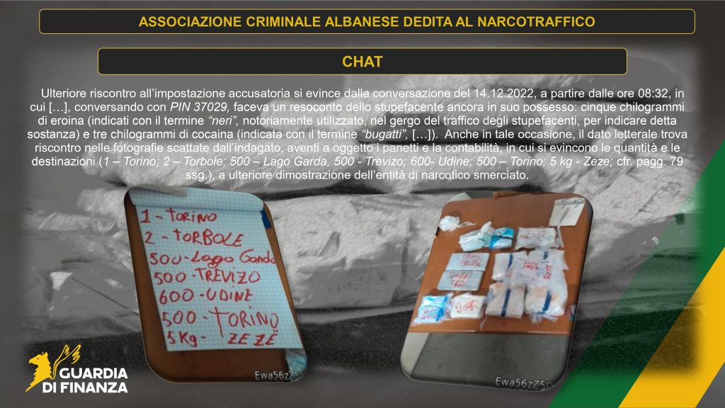 L’attività investigativa del Nucleo di Polizia Economico-Finanziaria di Brescia – G.I.C.O. Sezione G.O.A. e dello S.C.I.C.O. si è svolta nell’ambito di un Joint Investigation Team attivato con le autorità albanesi della S.P.A.K. e quelle svizzere. Gli investigatori hanno utilizzato tecniche di indagine avanzate tra cui: decifratura di chat criptate attraverso moderni algoritmi; intercettazioni telefoniche, telematiche e ambientali; attività di osservazione e pedinamento su vasta scala.