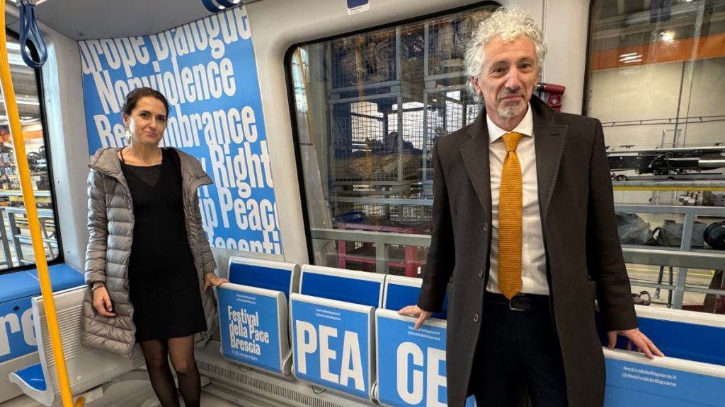Un treno della metropolitana completamente allestito con grafiche e messaggi del Festival della Pace circola da oggi fino al 23 novembre per promuovere l’ottava edizione della rassegna organizzata da Comune e Provincia di Brescia, con Fondazione Brescia Musei e Amnesty International e con l’alto patrocinio del Parlamento Europeo. L’iniziativa è realizzata dal Gruppo Brescia Mobilità.